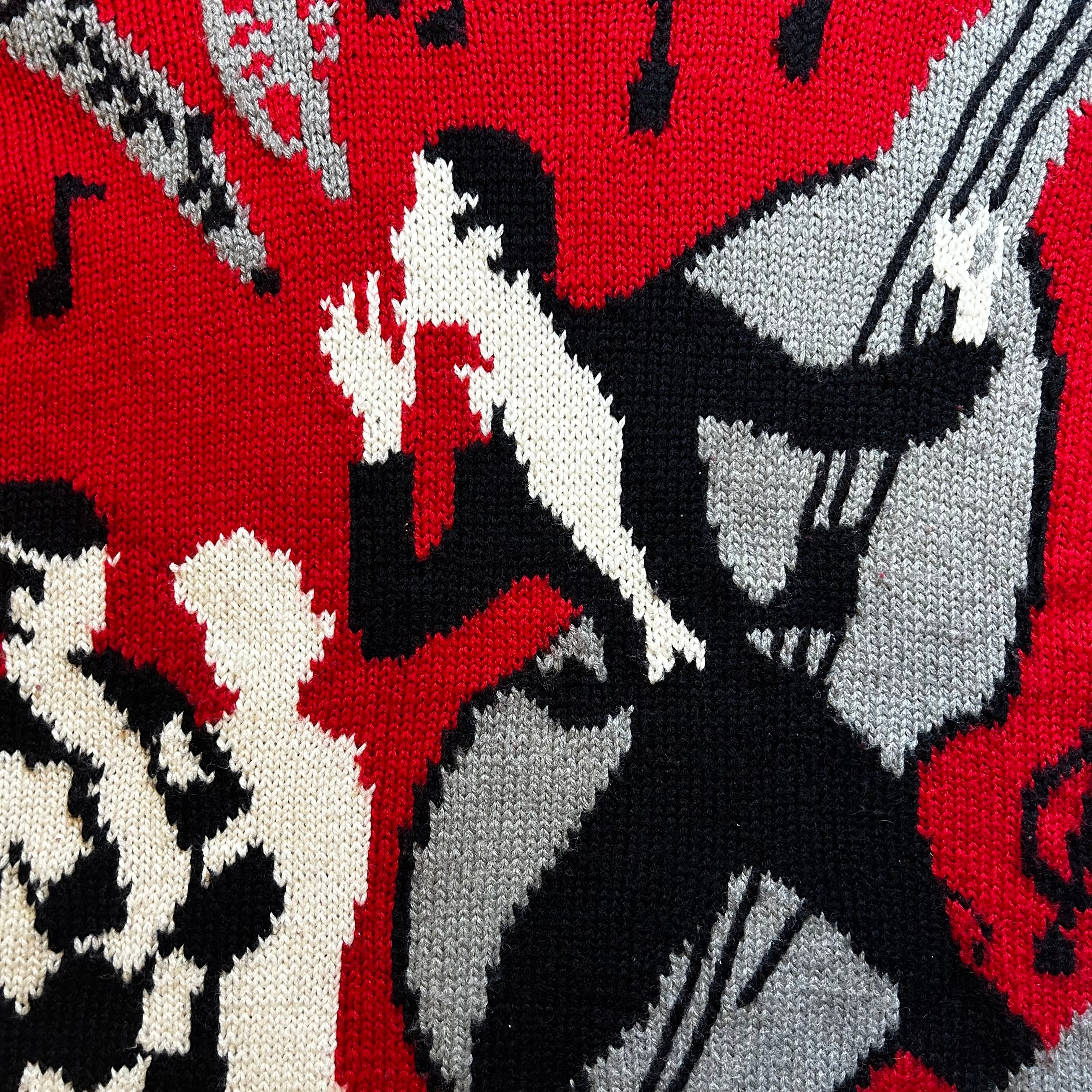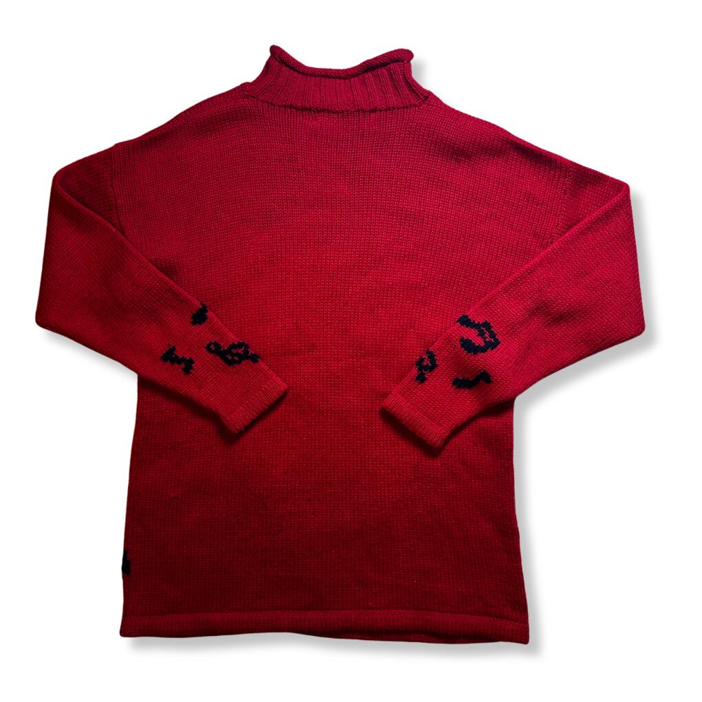 KRIZIA クリツィア ジャズモチーフ アートニットセーター 赤 M イタリア製 音符柄 ミュージシャンデザイン 80s 90s ビンテージ アクリルウール混