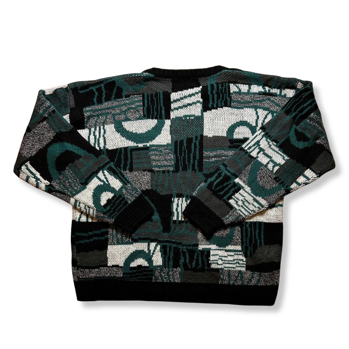 USA製 Protege 90s 総柄 アートデザイン ニット セーター 幾何学 グリーン ブラック Mビンテージ 古着