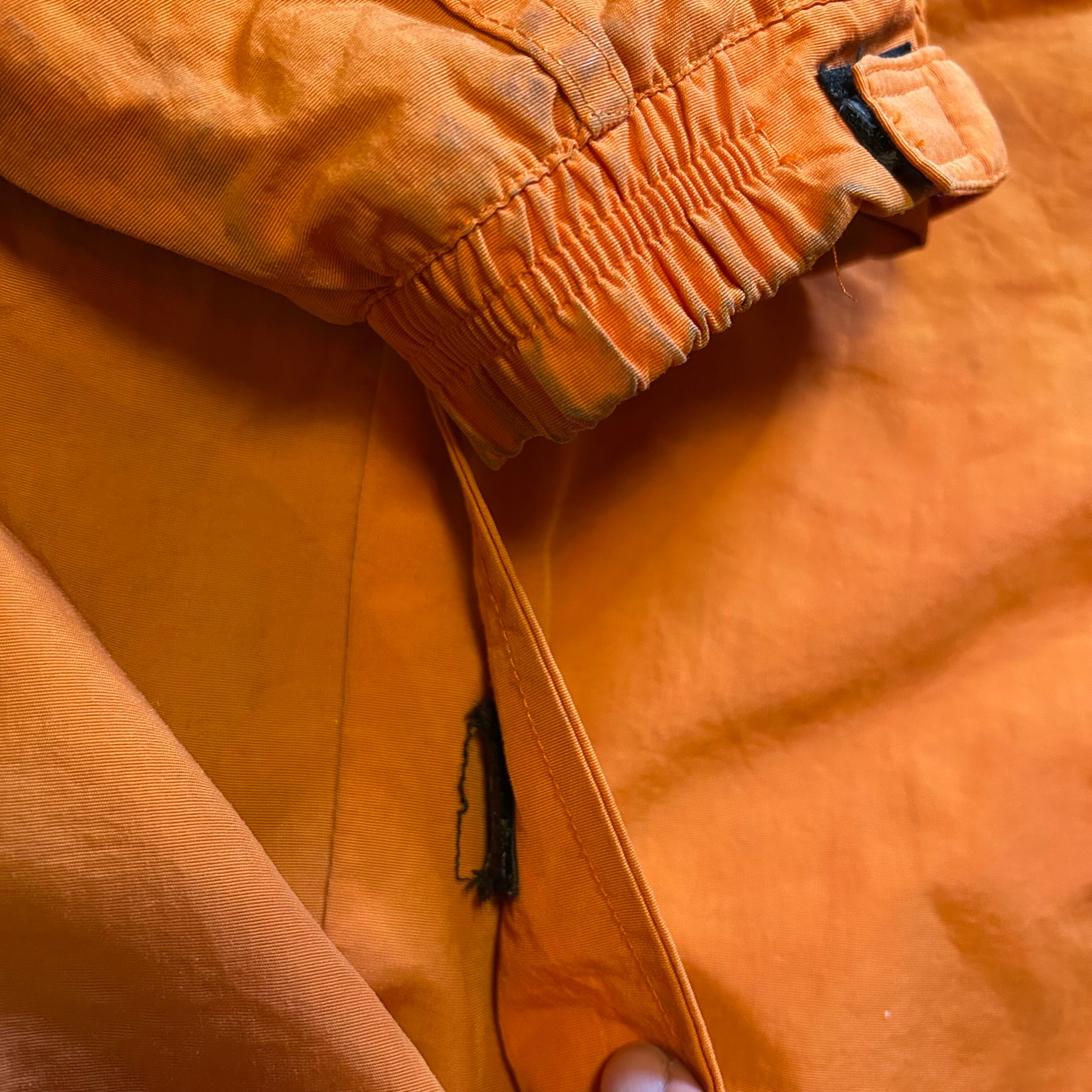 鮮やかなオレンジにネイビーフリースの裏地で、90s〜00sらしい雰囲気のある一着。軽量で暖かく、アウトドア・ストリートどちらにも合わせやすいデザインです。
