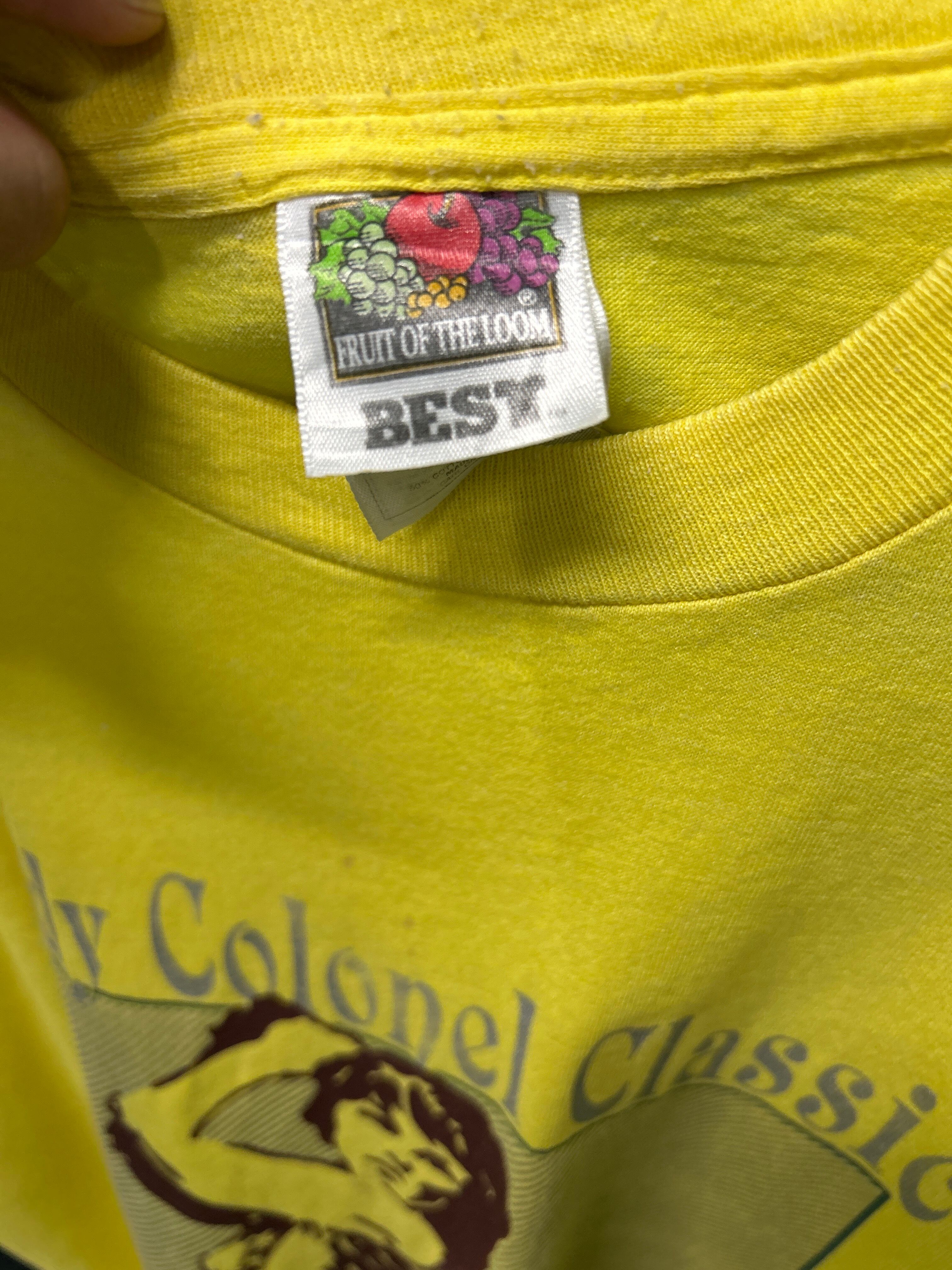 1996年開催「Lady Colonel Classic」プリントTシャツです。Eastern Kentucky University関連のイベントモデルと思われる一枚。鮮やかなイエローボディにゴルファーのグラフィックが映える、90年代らしいデザインが魅力。FRUIT OF THE LOOM BESTタグのUSA製ボディを使用したヴィンテージTシャツです。
